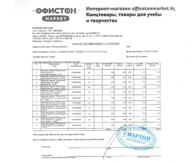 - доставка Товара осуществляется по территории Республики Беларусь;